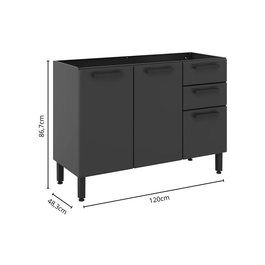 Bajo Mesada De Acero Bertolini Mod. Estilo 1.20 Gris SBO-120