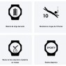 BATERÍA DE 10 AÑOS DE DURACIÓN • Resistente al agua hasta 100 metros • Luz de fondo LED • Cronómetro de 1/100 segundos • Hora dual • Alarma diaria.