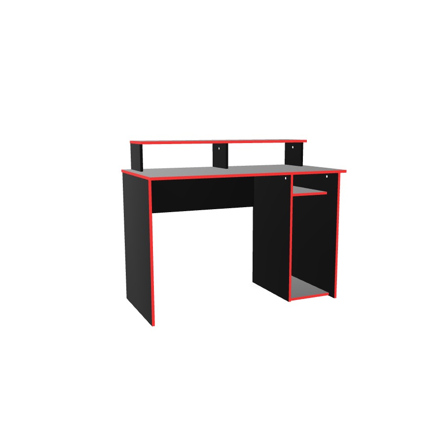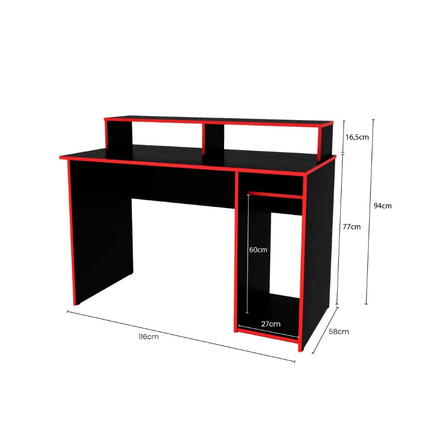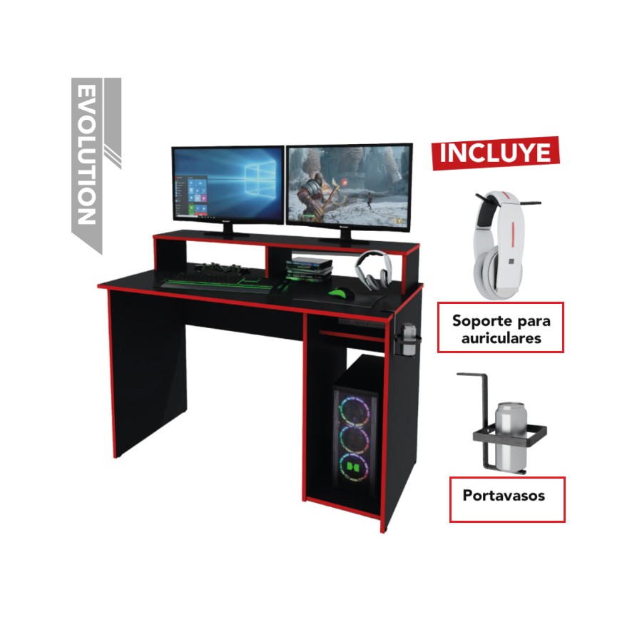 Escritorio pensado para el o la gamer de la familia. Cuenta con espacio para CPU y dos monitores. Incluye accesorio para auriculares y para vaso o lata de bebida ¡un escritorio con mucha onda y neón!
