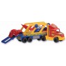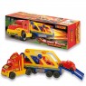 Camión de transporte para autos, posee una rampa trasera por donde podrán ascender y descender los autos. Incluye dos autos para transportar, calcos para decorar.