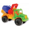 Cementero de dos movimientos mezcla y descarga. Posee una manija para mover el mezclador y descargar la mezcla