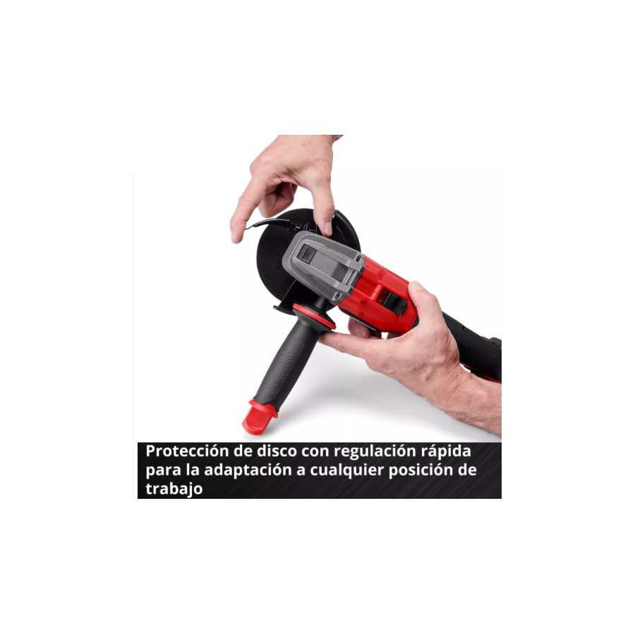 Dos rejillas de protección al polvo integradas protegen el interior de la amoladora angular de suciedad y aumentan la vida útil en combinación la conducción de aire inteligente. Las rejillas se pueden quitar para facilitar la limpieza. Con una velocidad de ralentí de 8.500 r.p.m. también se pueden realizar trabajos de desbaste y separación exigentes. La función de arranque suave y la protección de reinicio cuidan el motor y sirven para la seguridad del usuario. Se puede trabajar cómodamente gracias a la forma constructiva compacta y ligera con empuñadura adicional, que puede montarse en 2 posiciones. El desacoplamiento del motor y la transmisión garantizan un funcionamiento suave y la protección del disco, provisto de ajuste rápido, permite un trabajo flexible. Además, se suministra una protección de corte. La amoladora angular con batería está equipada con una protección contra sobrecarga que, junto con una robusta carcasa de engranaje de aluminio, garantiza la durabilidad del equipo.