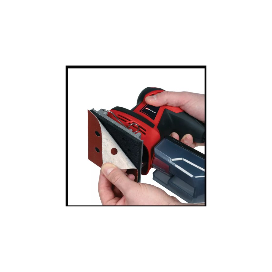 Un clip para el cable permite enrollarlo y asegurarlo fácilmente, facilitando un almacenamiento ordenado después de su uso. La lijadora incluye tres hojas de lija P120 y tres P240, para que puedas comenzar a trabajar de inmediato.