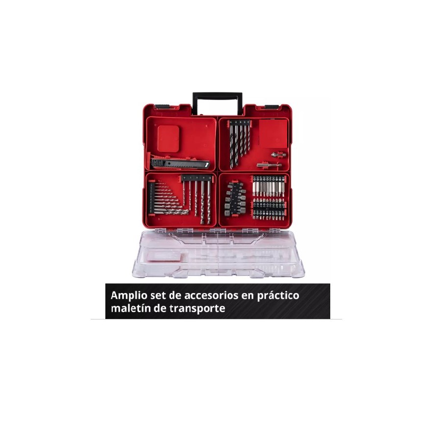 Se presenta en un práctico maletín con un juego de accesorios de 64 piezas