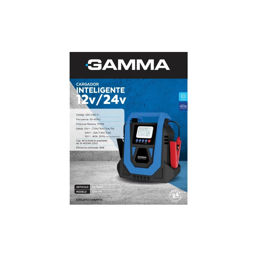 Cargador inteligente de baterías de plomo-ácido de 12V y 24V con opción BOOST, potencia máxima de 700W, y múltiples sistemas de seguridad. Ideal para baterías de autos, motocicletas y vehículos pesados.