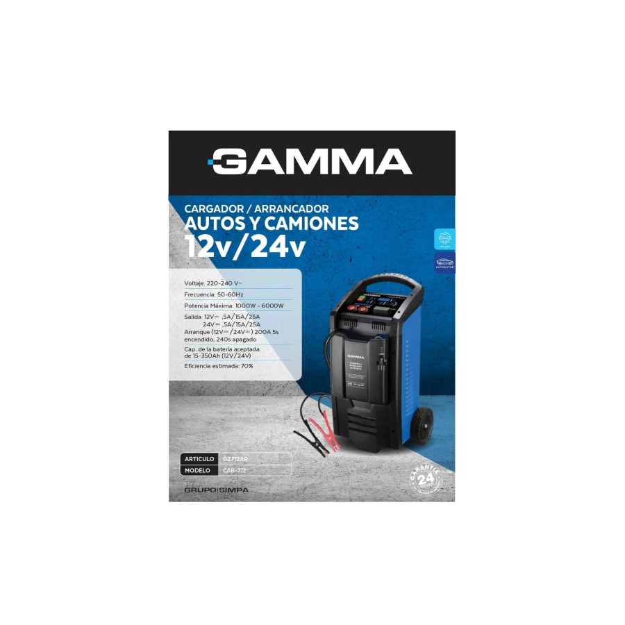 Cargador y arrancador de autos y camiones G2712AR CAB-712, con salida 12/24V, ideal para baterías de plomo-ácido y LiFePO4. Potente, seguro y eficiente, cuenta con protección avanzada y arranque de 200A.