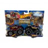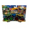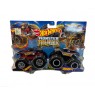 Los Hot Wheels Monster Trucks 1:64 Scale Demolition Doubles ¡Los dos paquetes duplican la acción con dos Monster Trucks listos para enfrentarse en batallas cara a cara! Cada uno de los dos vehículos a escala 1:64 tiene ruedas GIGANTES y grandes personalidades. Los dúos están emparejados a propósito para ataques de choque épicos: busque los antecedentes y las estadísticas de cada uno en el paquete, incluido el nombre, el tipo de camión, la fuerza, el ataque de choque único y la motorización para una gran diversión narrativa.
