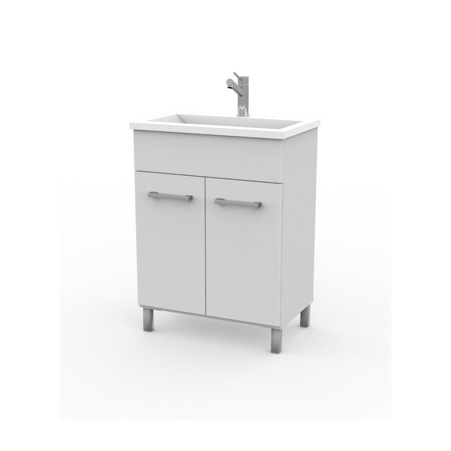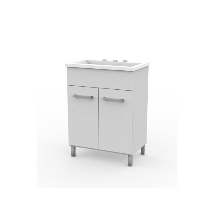 VANITORY RECTO CON PATAS Y DOS PUERTAS, CON MESADA DE MARMOLINA.