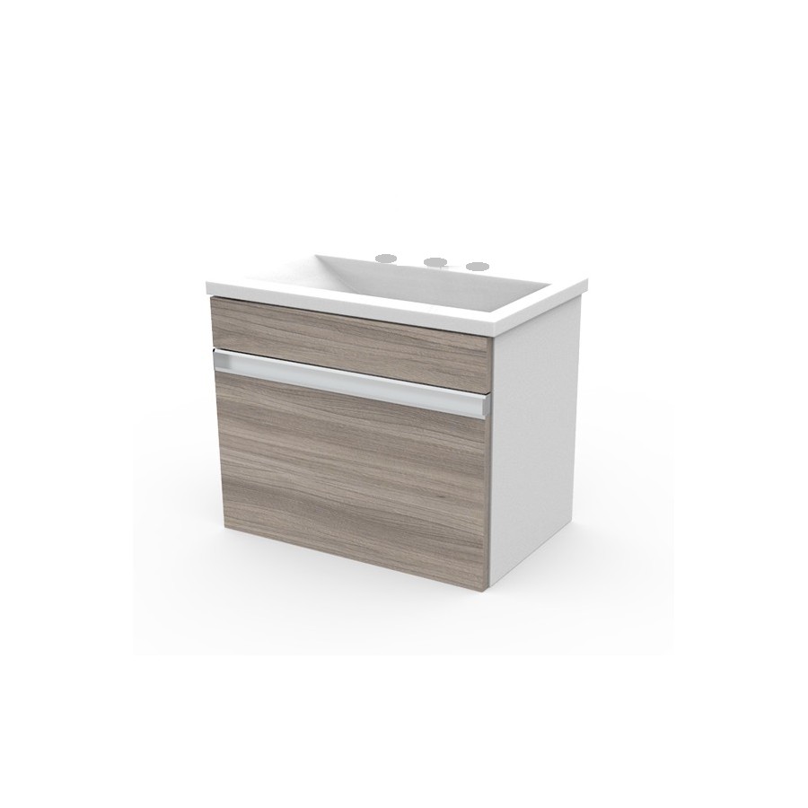 VANITORY RECTO COLGANTE CON MANIJA DE ALUMINIO Y UNA PUERTA VOLCABLE, CON MESADA DE MARMOLINA. SE ENTREGA EN CAJA PARA ARMAR.
