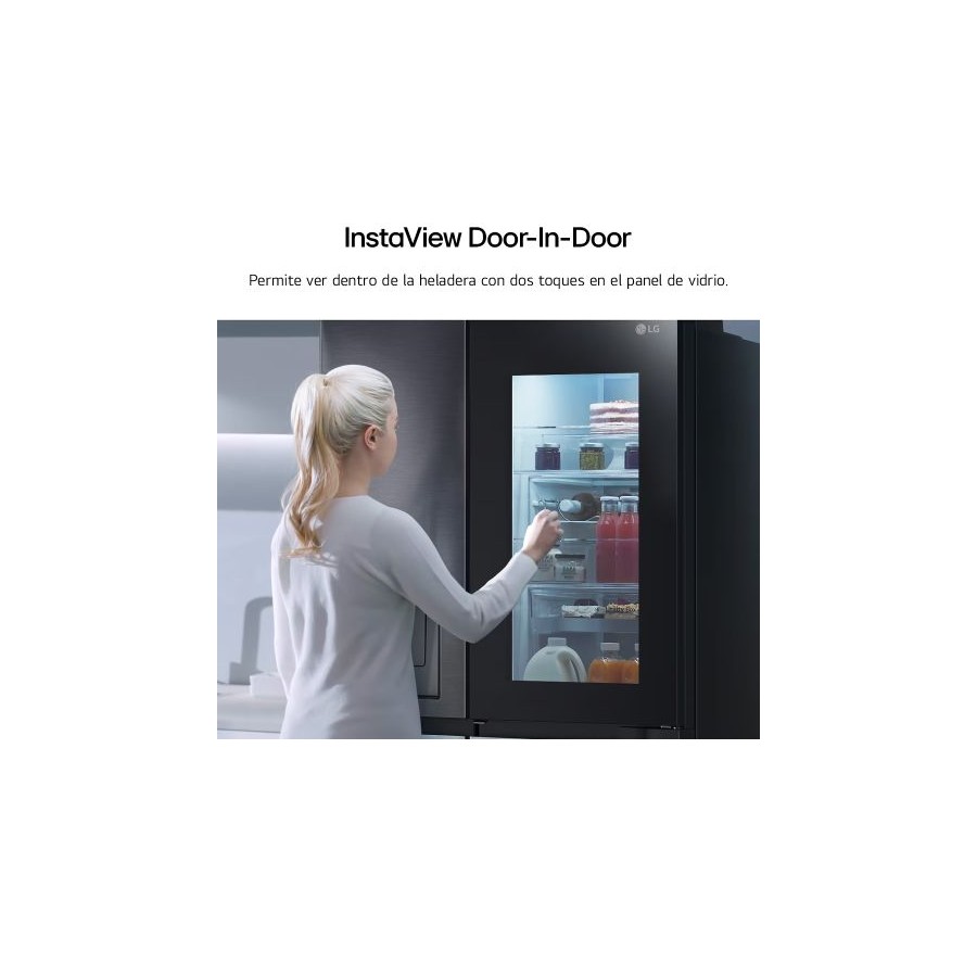 Heladera LG tipo Side by Side InstaView solo con un TocToc en la puerta puedes mirar el interior sin necesidad de abrirla evitando la perdida de aire frio dentro del refrigerador, mantén tus alimentos y bebidas siempre frescos y con la misma temperatura inclusive desde la puerta con la tecnología DoorCooling, disfruta de la exclusividad y la versatilidad de Craft Ice en cada bebida y prolongando el sabor de la misma con el hielo esférico de difusión lenta, protege a todos los que amas con la tecnologia UVNano reduce automáticamente el *99,99% de las bacterias de la boquilla de agua con luz UV, Monitorea o ajusta la temperatura de tu nevera desde un dispositivo móvil solo debes de descargar la App Th.