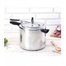 Cuerpo de aluminio de primera calidad y tapa con válvula reguladora cromada. Mangos y asas de baquelita, fleje de acero cromado y válvula de seguridad.