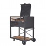 Una parrilla tradicional para desarrollar sus capacidades culinarias. Posee una parrilla de hierros redondos enlozados y a continuación un brasero para encender con facilidad el carbón o la leña, sobre este se puede colocar una plancha o wok donde cocinar vegetales, filetes, provoletas, etc.