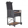 Montada sobre un carro con ruedas para poder trasladarla al lugar de su preferencia. En la base del carro hay un estante de madera para apoyar los elementos que desee. Ofrecemos como adicional una Plancha Ñuke que se puede usar sobre la parrilla o sobre el brasero y una funda para protegerla del sol y la lluvia.