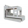 La cama cucheta triple de Orlandi está diseñada para que maximices tus espacios. En un solo mueble vas a poder encontrar: 3 camas (cama inferior deslizable con rueditas), 1 puerta, 1 cajón y 3 estantes. Además, su parrilla está hecha de madera maciza y sus largueros y escalera son de 25 mm, mientras que sus cabeceras de 15 mm.