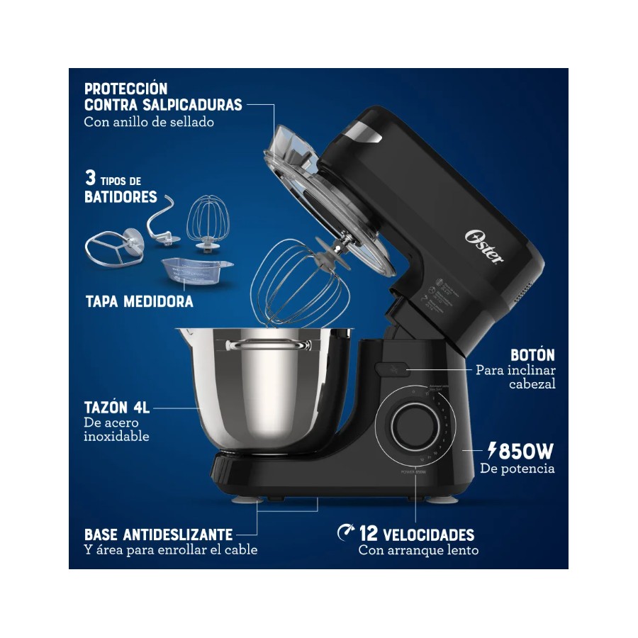 La batidora Oster® ofrece el máximo rendimiento para hacer latir más rápido el corazón de los amantes de la repostería. Sus 12 velocidades y la acción planetaria te dan más opciones para preparar tus recetas favoritas. Desde preparar masas, cremas, toppings, pastas, hasta todo tipo de recetas con mucha más practicidad y precisión. Con 850 W de extraordinaria potencia probada y diseñada pensando en el consumidor y en las recetas latinoamericanas.