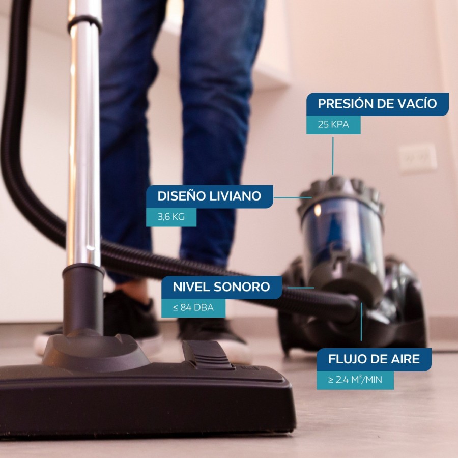 Con la aspiradora Philco di adiós a la suciedad y los desechos con un solo movimiento. Esta poderosa aspiradora te brinda una limpieza impecable en cada rincón de tu hogar. Su sistema de aspiración ciclónico la vuelve mucho más eficiente. Además viene con un cepillo multifunción para dejar tus sillones limpios.