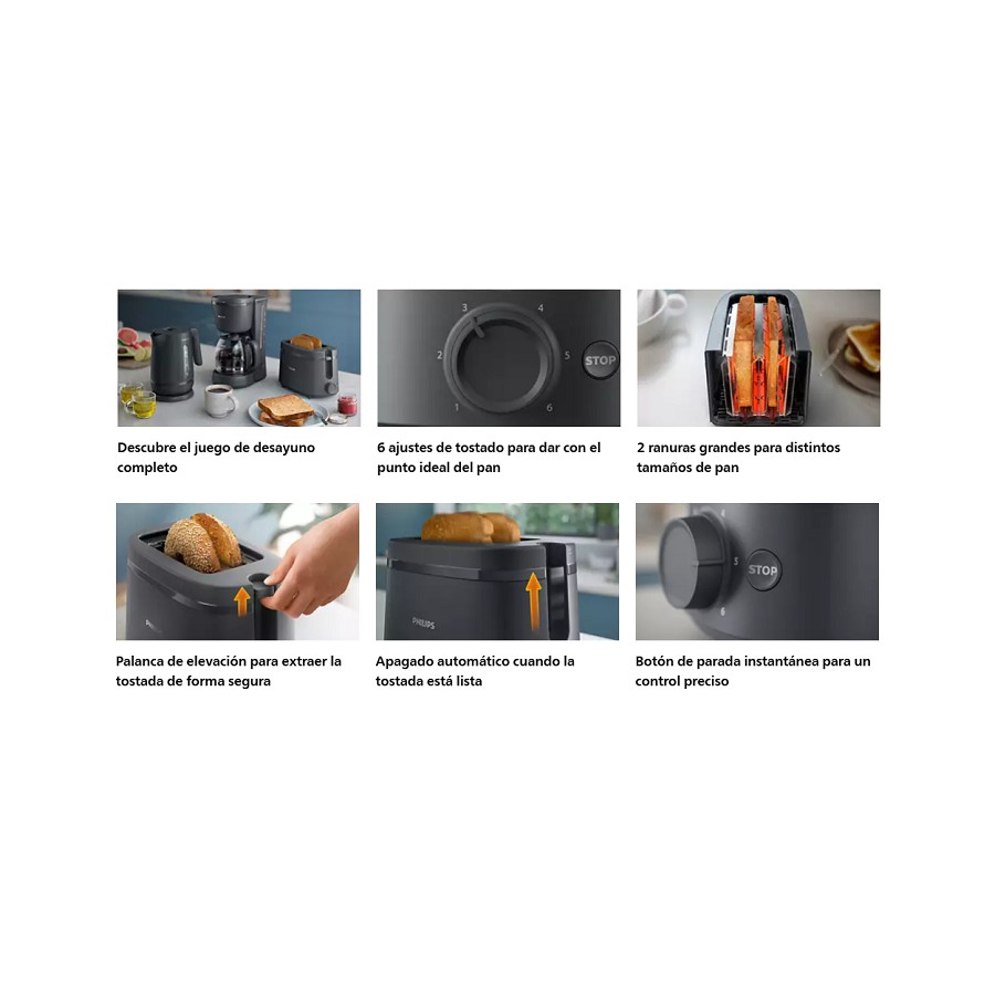 Tuesta, relájate y repite. Solo tienes que elegir la intensidad de tostado y ver cómo se prepara a la perfección. La tostadora se apaga solo después de terminar, así que no tienes que hacer nada, solo disfrutarlo.