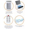 Este climatizador no solo enfría el aire, sino que también actúa como purificador y humidificador, mejorando la calidad del aire que respiras. Con una capacidad de agua de 12 litros y una potencia de 80 W, ofrece un rendimiento eficiente, clasificado con una eficiencia energética de tipo A, lo que lo convierte en una opción responsable y sostenible.