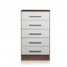 Mueble fabricado en melamina sobre MDP de 15 mm. Dispone de 5 cajones con correderas de cajón metálicas.
