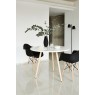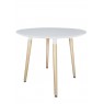 Enchapado de melamina color blanco Patas de eucalipto macizo torneado y laqueado semi mate.