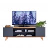Diseño con dos puertas. Cuerpo central en eucalipto alistonado. Base y patas de eucalipto alistonado barnizadas.