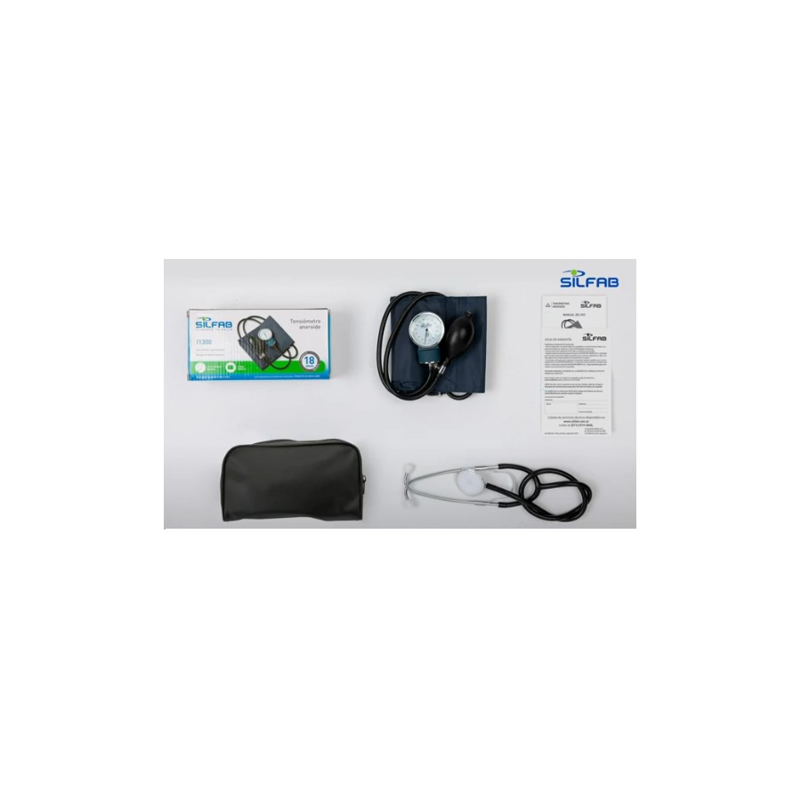 Tensiómetro aneroide Standard. Con estetoscopio biaural y manga de 22 a 32 cm de diámetro. Incluye funda vinílica. Garantía 18 meses. Las fotografías y gráficas son meramente ilustrativas. Los productos podrán sufrir modificaciones en sus accesorios y/o colores sin previo aviso.