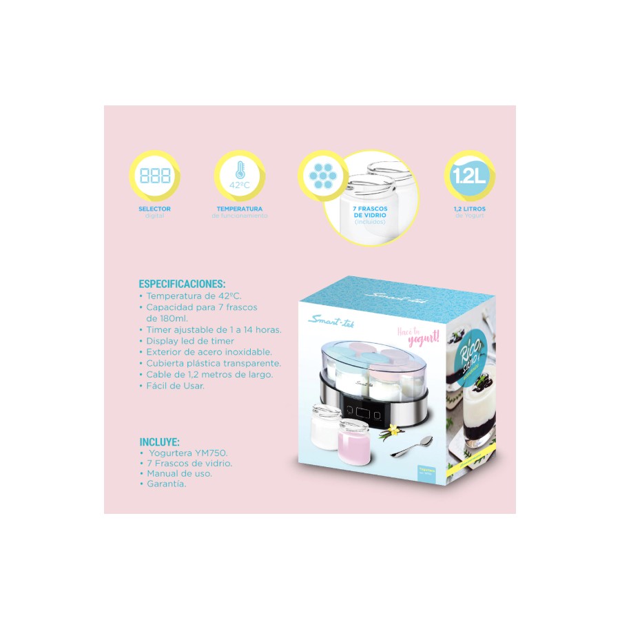 Con la Yogurtera YM750, disfrutarás de un yogurt cremoso y delicioso, libre de conservantes y aditivos. Es fácil de usar, ideal para principiantes y expertos en la cocina.