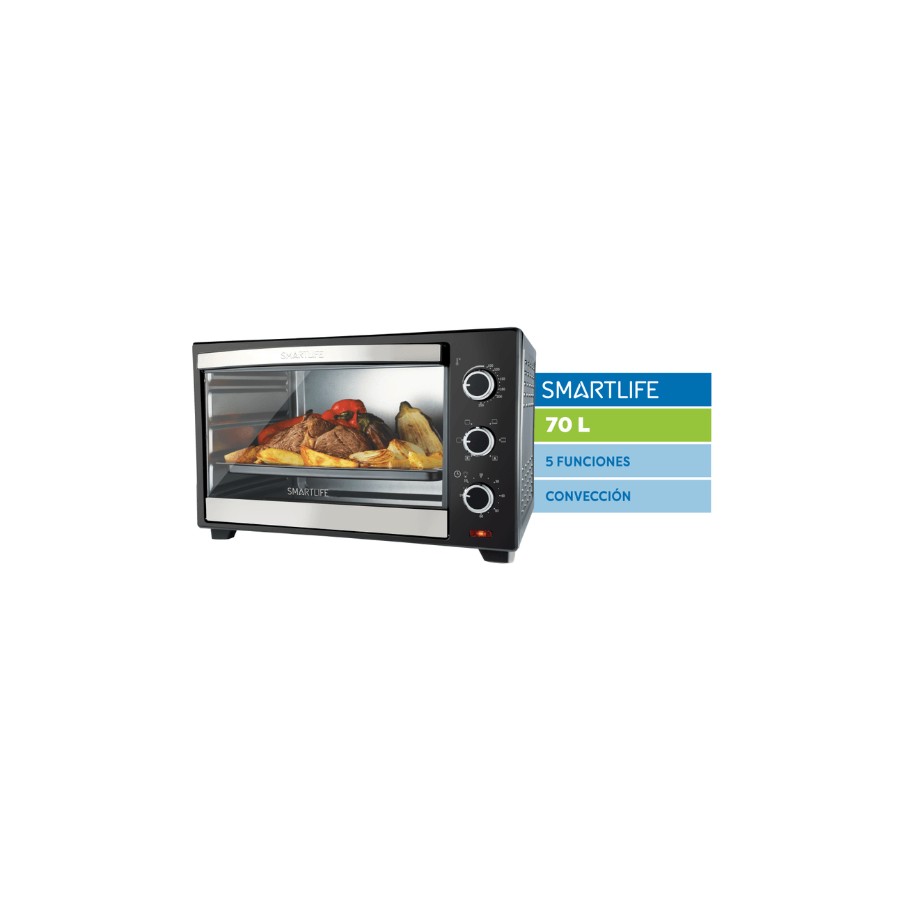 Descubre el Horno Eléctrico de Convección SL-TO0070PN, tu aliado perfecto en la cocina. Con una generosa capacidad de 70 litros y 5 opciones de cocción, este horno te brinda la versatilidad que necesitas para preparar una gran variedad de platos.