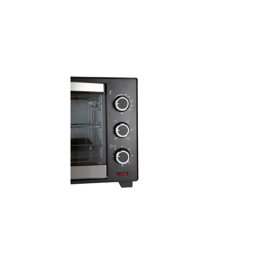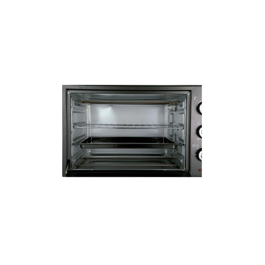Cuenta con luz interior para que puedas supervisar tus preparaciones sin necesidad de abrir la puerta, y un regulador de temperatura que va desde los 100°C hasta los 250°C, permitiéndote ajustar el calor ideal para cada receta. Además, su temporizador de hasta 60 minutos te ayuda a controlar los tiempos de cocción con precisión.