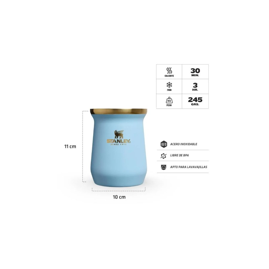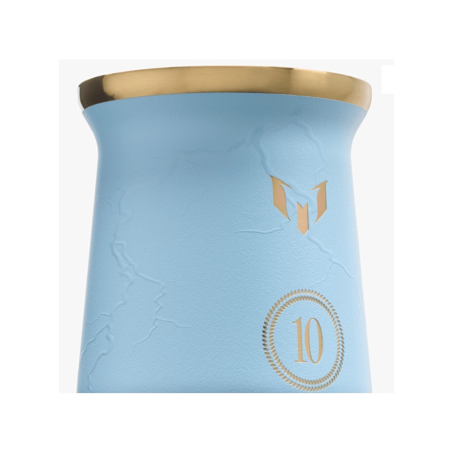 Start early. Stay Late. Esta colección Messi x Stanley 1913 en celeste eléctrico cuenta con un relámpago en relieve que resalta con su acabado dorado de primera calidad. El Mate Clásico de 236 ml es de acero inoxidable. El aislamiento al vacío de doble pared mantiene tu bebida a la temperatura ideal, para que puedas alimentar tu dedicación dentro y fuera de la cancha.