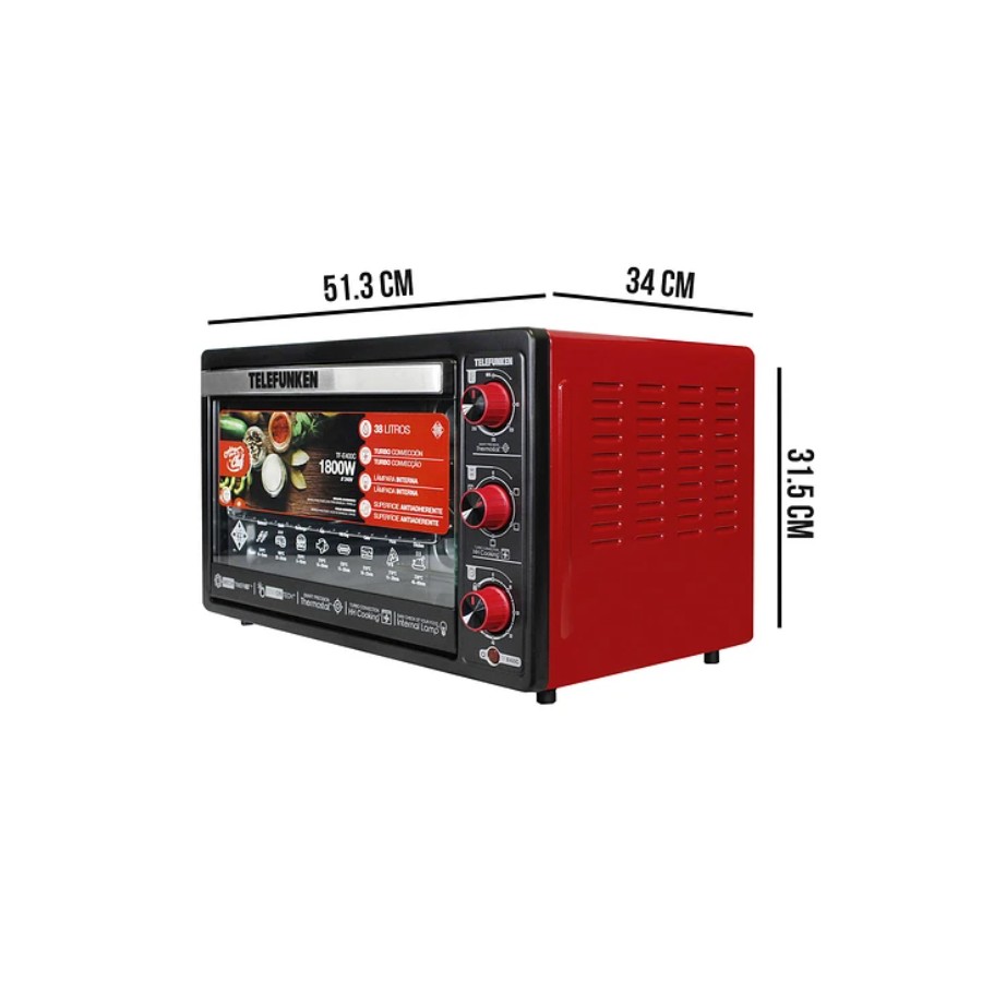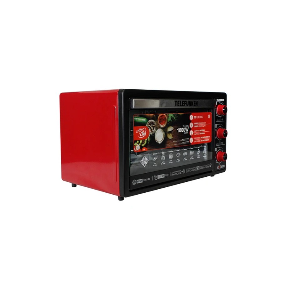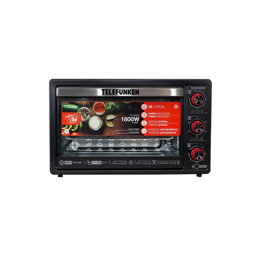 El TF E400C de TELEFUNKEN es un Horno Eléctrico de 38 litros de capacidad, dispone de un temporizador de 60 minutos y una temperatura regulable hasta 250°, para múltiples configuraciones de cocción, posee un ventilador de convección que hace circular el aire caliente dentro del horno y garantiza que el calor pueda llegar a todos los rincones del interior de la cavidad.